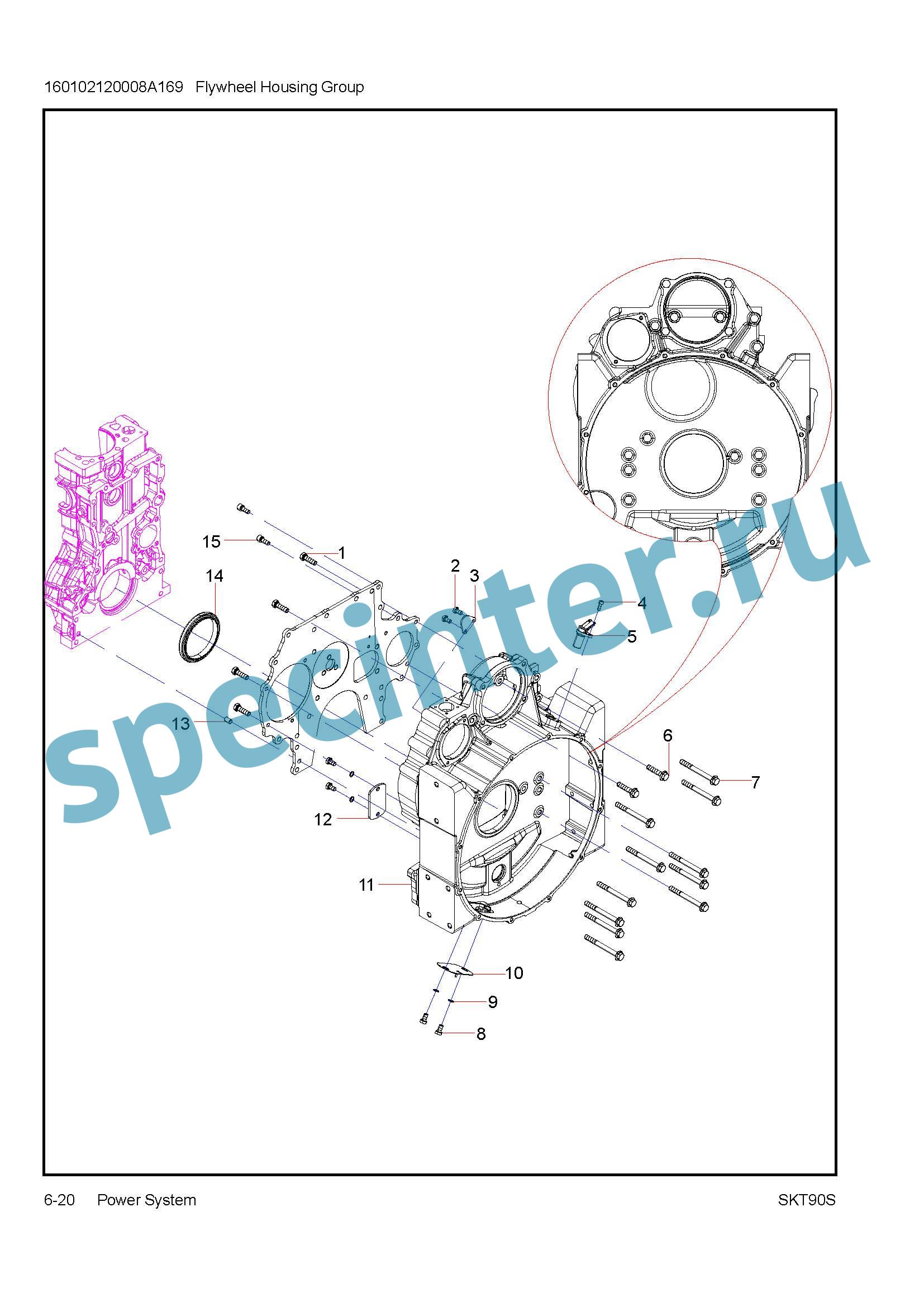 | 11 | 160102120008A014 | Корпус/Картер маховика SANY SKT90 |