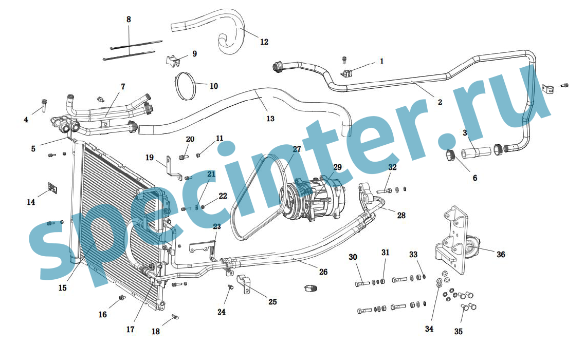 | 28 | DZ14251848214 | Трубка от компрессора кондиционера к радиатору SHACMAN/ШАКМАН X3000/5000 |