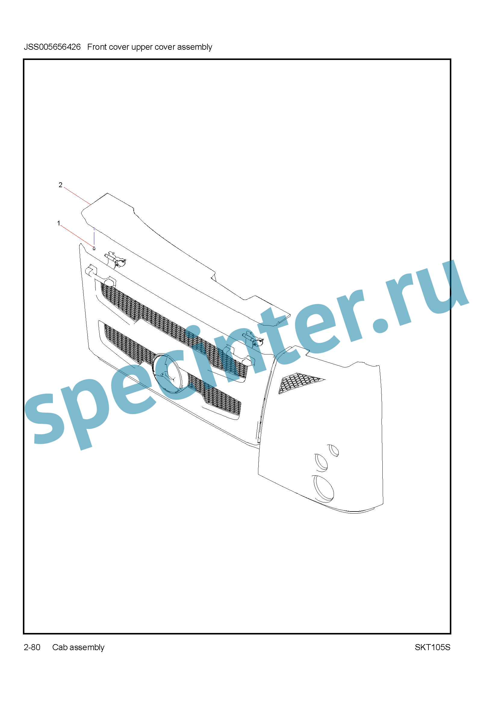 | 2 | JSS005656425 | Передняя верхняя часть капота SANY SKT105S |