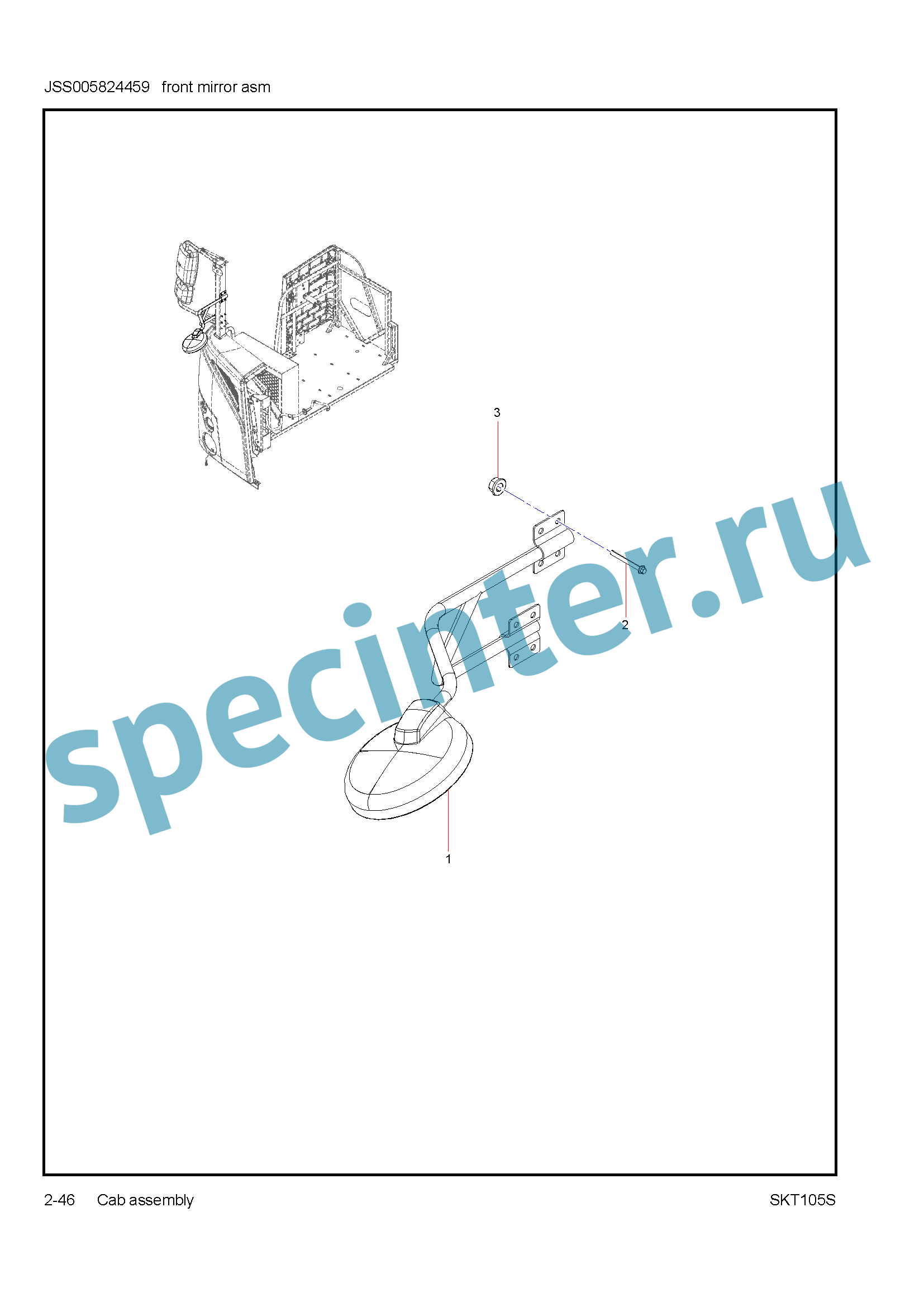 | 1.2 | JSS005786277 | Кронштейн зеркала переднего правого (бордюрное/круглое) SANY SKT105S |